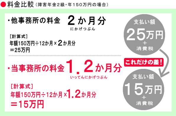 他の事務所の多くが「年金2か月分+消費税〜」を報酬としていますが、