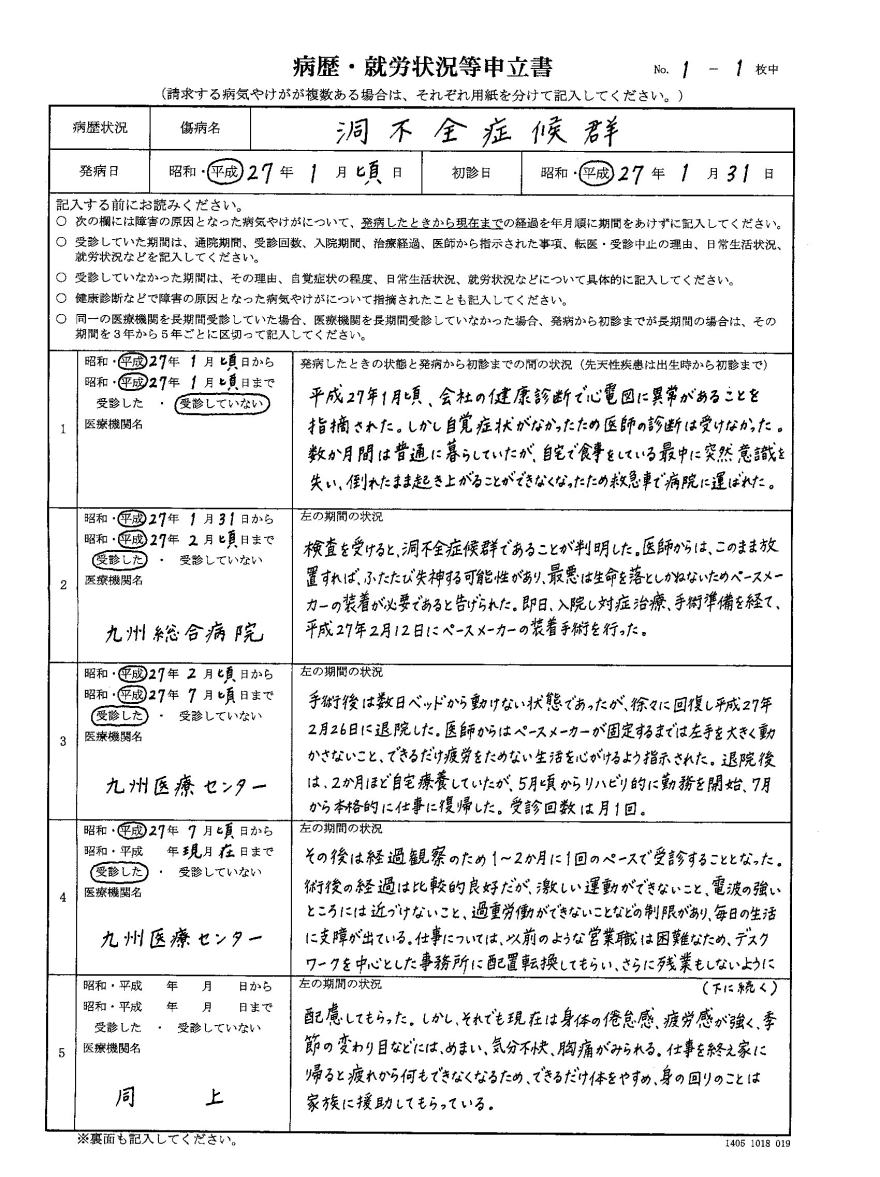 〔傷病名:洞不全症候群〕 発病日:平成27年1月頃 初診日:平成27年1月31日