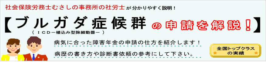 ブルガダ症候群は、突然の心室細動により心肺停止し、失神したり、時に死にみまわれることもある原因不明の病気です。ふだんは動悸、息切れといった心臓病特有の症状はみられませんが、いったん発作が起こると生命が危険にさらされるため、多くの方はICD(植込み型除細動器)移植術を受けます。障害年金では、このICD(植込み型除細動器)移植術を受けた場合、3級に認定されます。