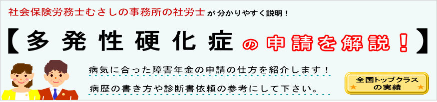 また初めてかかった医療機関に初診日の証明を依頼するさいは、多発性硬化症ならではの症状があったことを必ず記入してもらい、病歴状況申立書で発病から初診までの経過を丁寧に書き込むようにします。こうすることで、初診日を認定してもらえない…というトラブルが最小限に抑えられ、スムーズに障害年金が決定します。