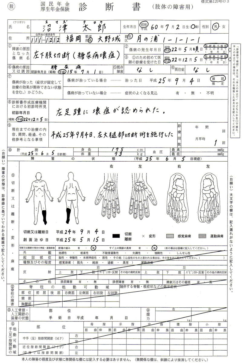 ◆欠損障害の診断書見本