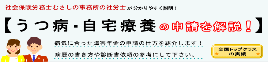 社会保険労務士むさしの事務所が、うつ病で障害年金の手続きをさせていただいた中で、一番受給されているのが「自宅療養中の方」です。